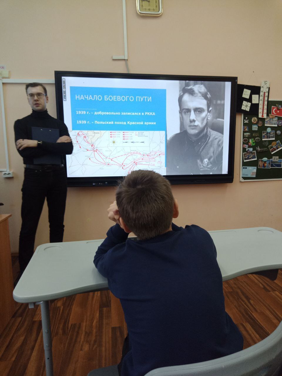 Непростому жизненному, можно сказать боевому пути Долматовского, который начался за два года до Великой Отечественной войны, а именно в 1939 году, была посвящена презентация и выступления спикеров. Присутствующие на встрече узнали об участии писателя в Польском походе Красной армии и Советско-финской войне, на которой Долматовский получает свою первую боевую награду. Не менее важно, что гости не просто узнавали о фактах биографии Евгения Ароновича, но и погружались в его творчество, в котором преломлялись фронтовые дороги советского литератора. Месяцы в окопах превратились под пером писателя в стихотворения и очерки. В это время родились строки таких стихотворений как "За фольварком, за чернолесьем, где-то…" или "Заявление".